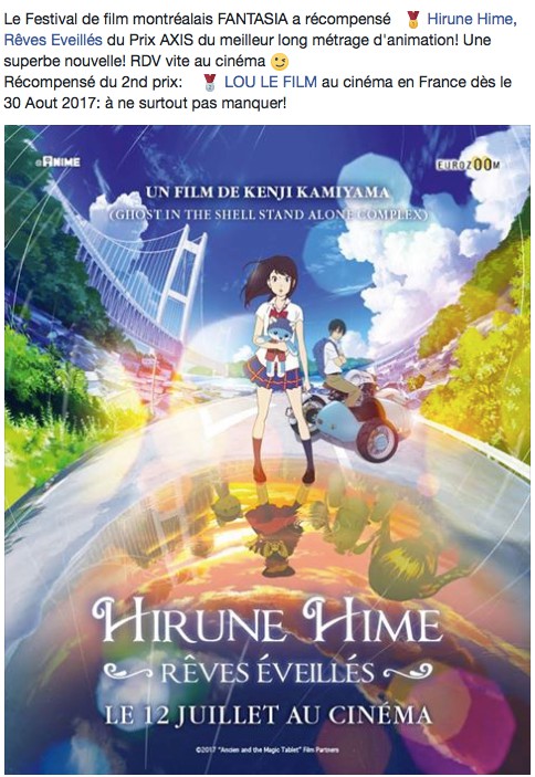 "Lu Over the Wall" a reçu le prix CRISTAL du long métrage lors du Festival Mifa à Annecy.